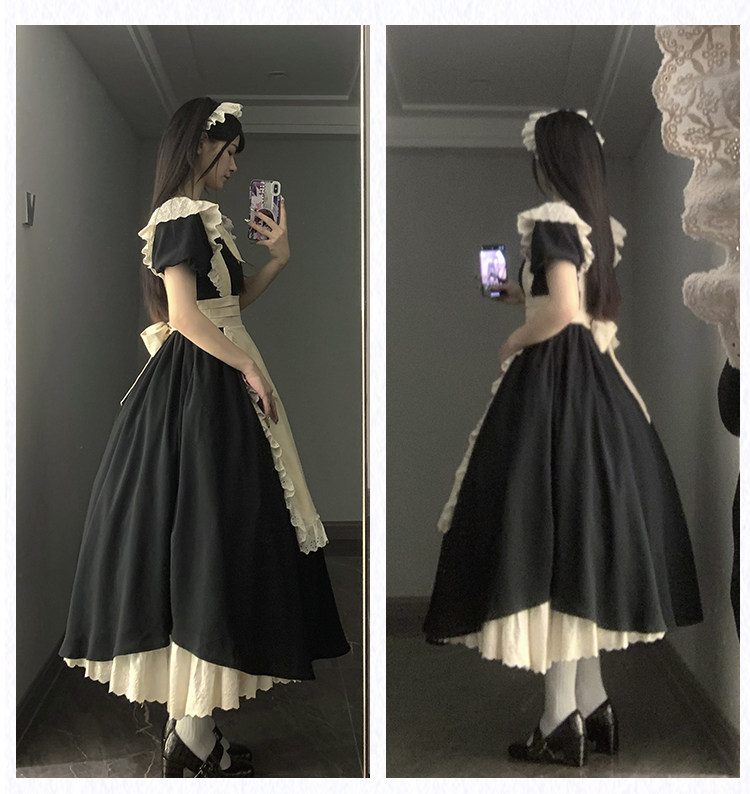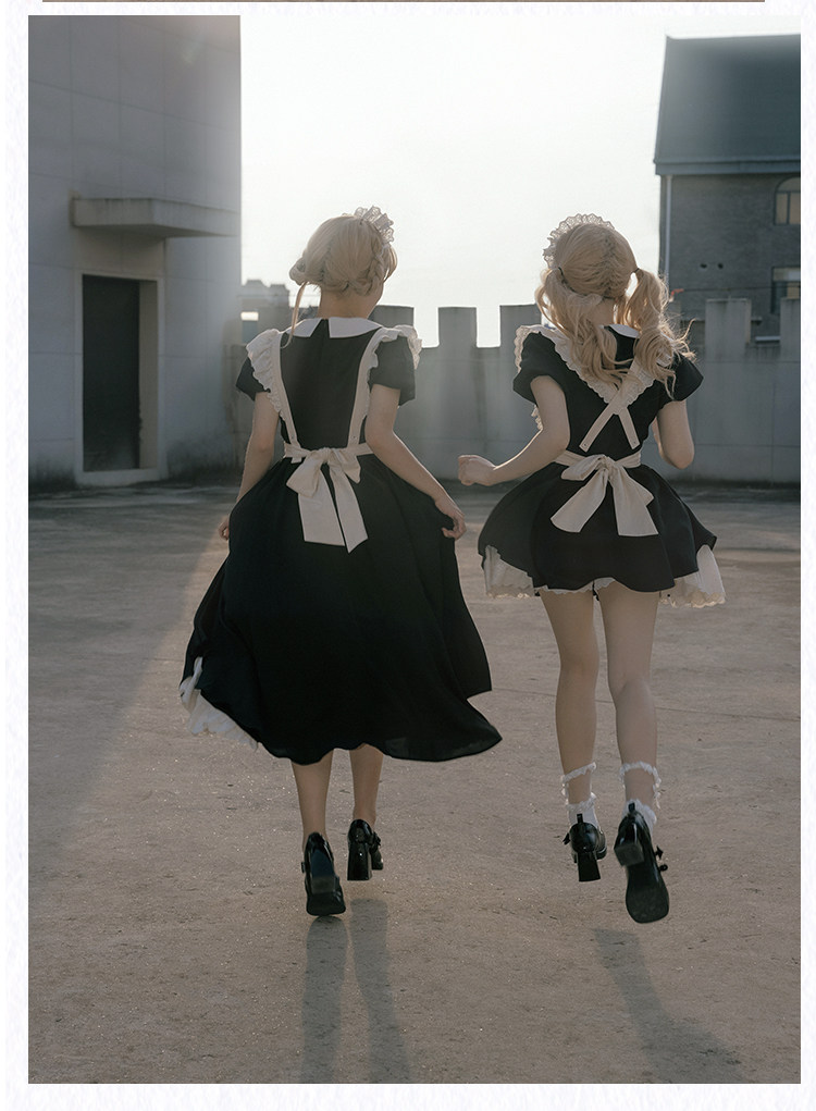 レトロ メイド服 オリジナルデザインメ!古代風な逆レースとレースアップディテール